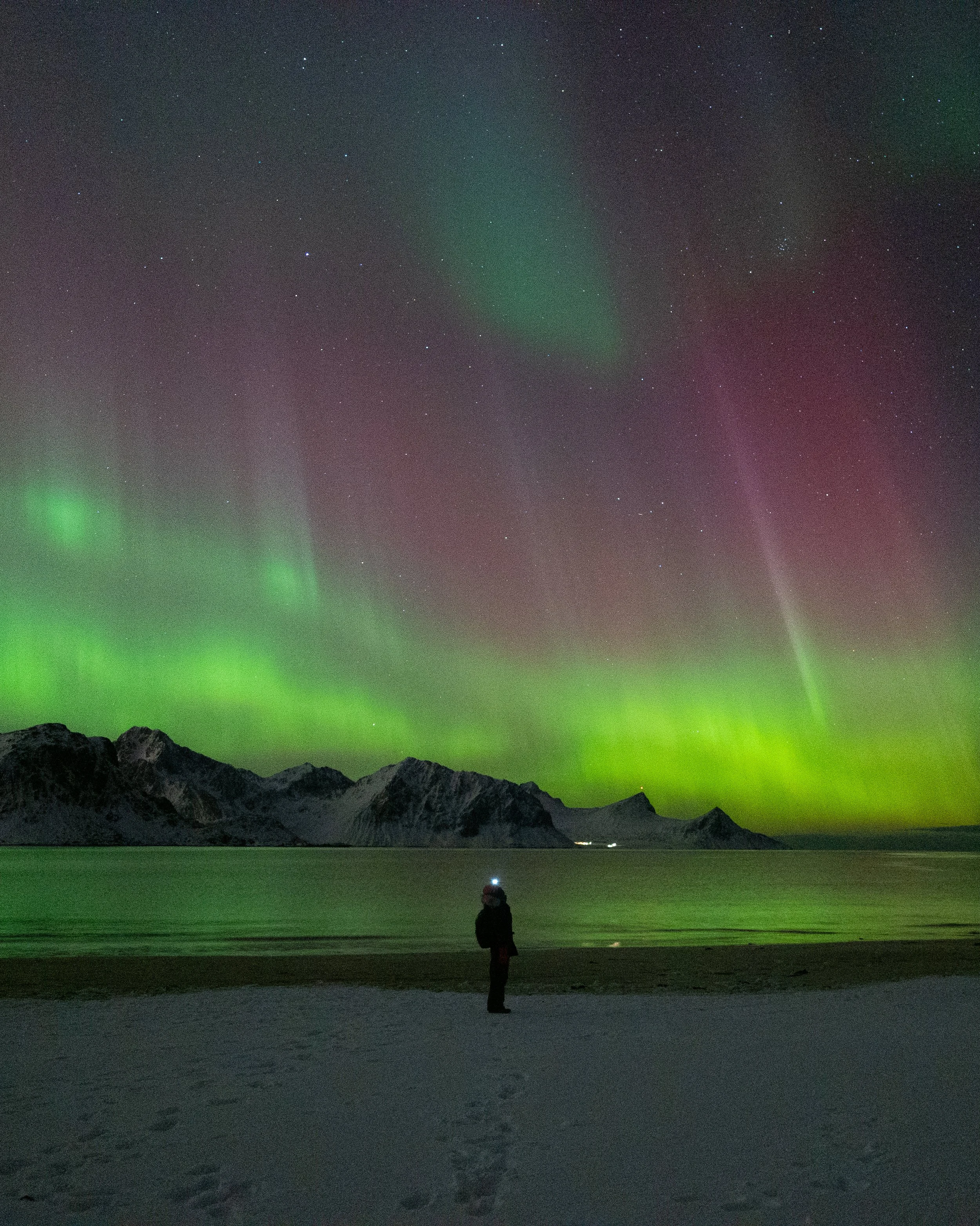 These locations below were optimal for viewing the aurora. They are also just as beautiful in the morning! Hauklandstranda Beach, Vik Beach and Uttakleiv Beach. You can check out my full post for chasing the northern lights here.